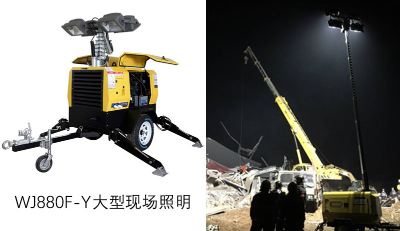 也可提供超大范圍晝夜連續(xù)作業(yè)的大型照明燈塔,WJ880F-Y全方位移動(dòng)照明燈塔, 采用4 個(gè)1000 W 高效節(jié)能燈頭,照明亮度高,覆蓋范圍大.實(shí)現(xiàn)任意升降調(diào)節(jié),最大升可起高度為10 米,燈光覆蓋整個(gè)工作現(xiàn)場(chǎng)以確保各種救援場(chǎng)景的照明保障能力。